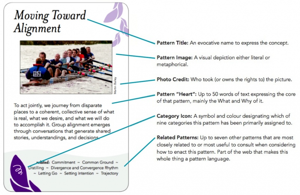 The deck consists of 91 full-colour 3.5" x 5.25" cards (plus a few blanks to add your own patterns), a five-panel explanatory insert, and an accompanying booklet explaining the purpose and history of the project and suggesting uses for the cards in group process work.